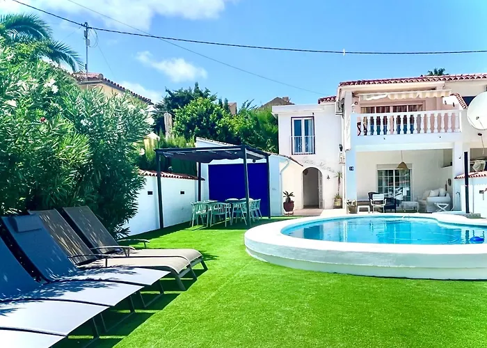 This El Albir villa is equipped with a toaster, an oven, and glassware for self-catering in an outdoor dining area. The bar Malibu is located about 600 metres away and serves Spanish dishes.